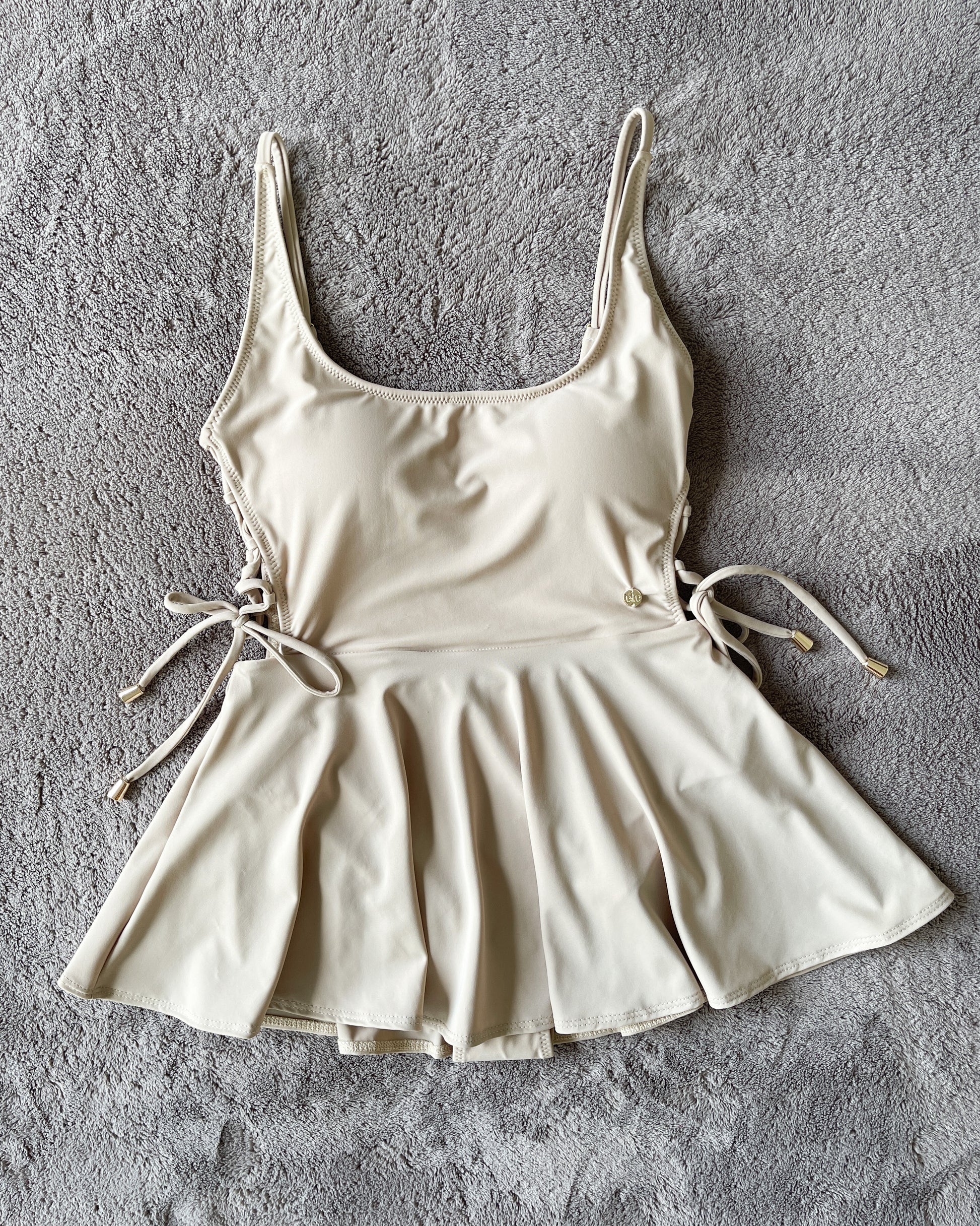 Blair is a full piece swimwear that has fixed skirt for coverage and be extra cute!