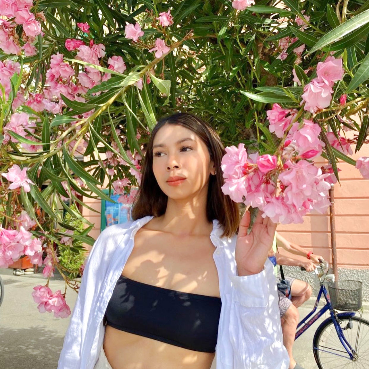 - Bandeau top with removable, adjustable straps
