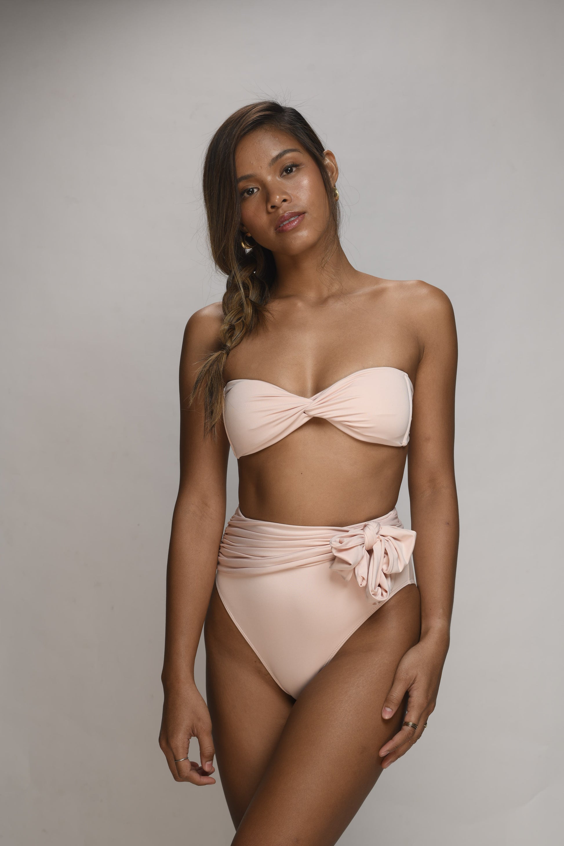 Jane Set gives a very sweet-looking swimwear. With its cute knotted bandeau and modest highwaisted bottoms, you'll surely look like a sweet island girl ;)
