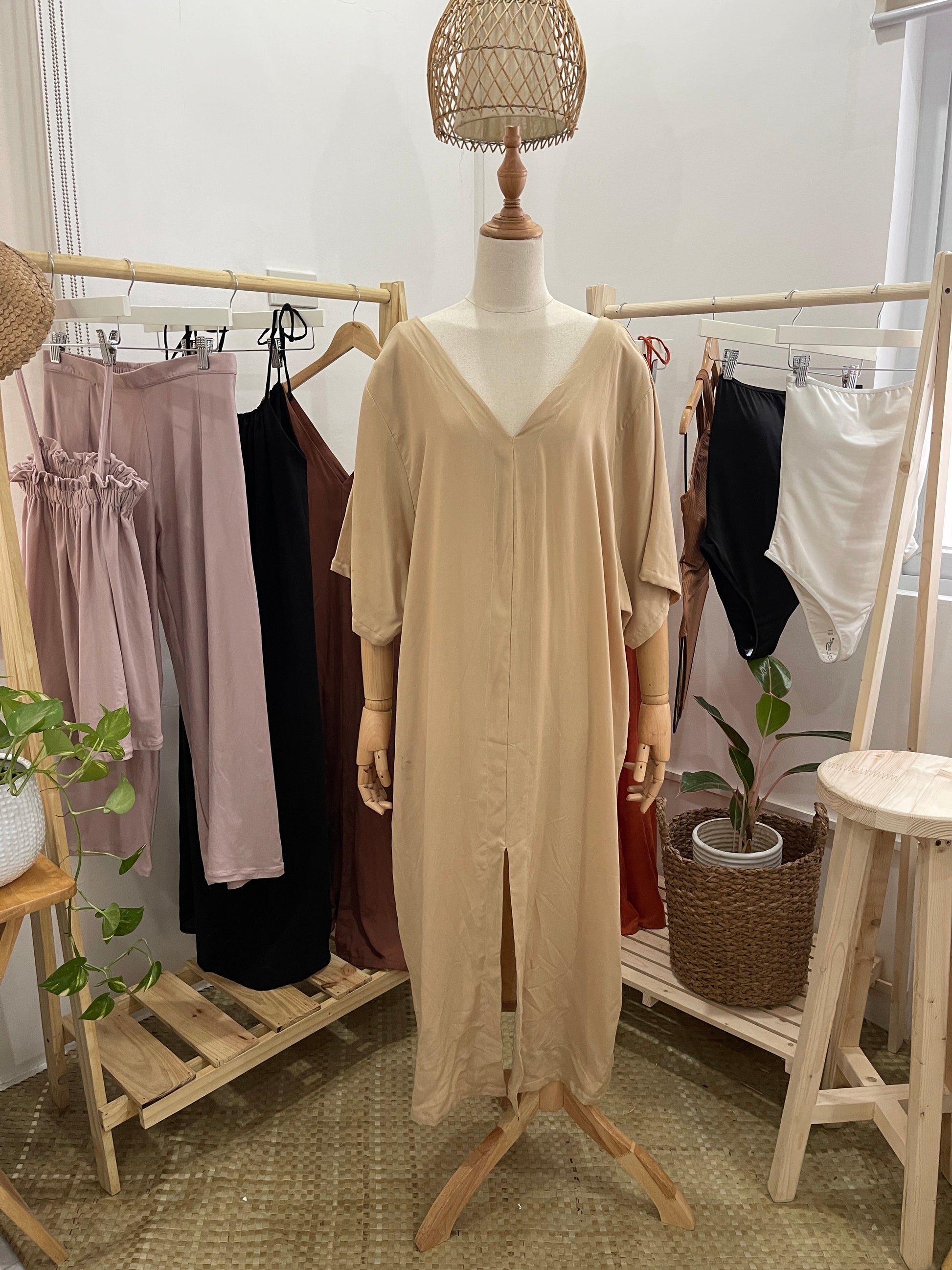 - Deep V maxi dress (front and back)